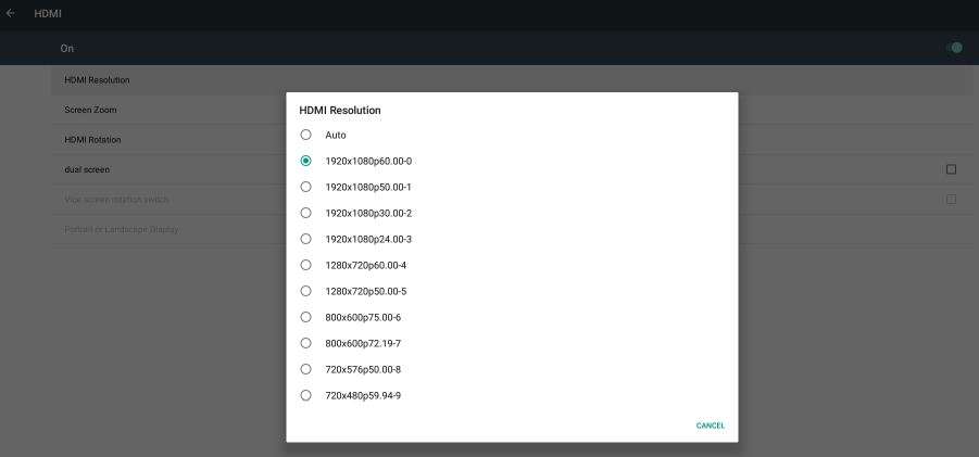 - 4K - usually resolution 3840 × 2160 pixels is used, also known as 2160p. Used on the most of new TVs. Requires at least HDMI 1.3 for 30 Hz or HDMI 2.0 for 60 Hz, meaning output device (Android box), cable and input device (TV) must support this version of HDMI.